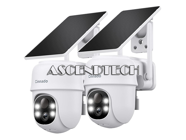 Cinnado 2-Pack B6 White 2K 5000mAh TF Card IP65 Waterproof Wireless Solar Surveillance Camera.