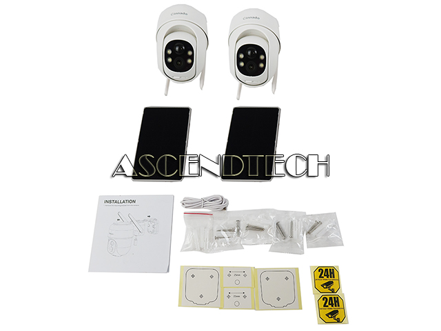 Condition Description Please note, this item comes with 2x Solar cameras, 2x Solar panels, 1x Type-C power cord, Screw pack, Installation guide! No other cables or accessories included!