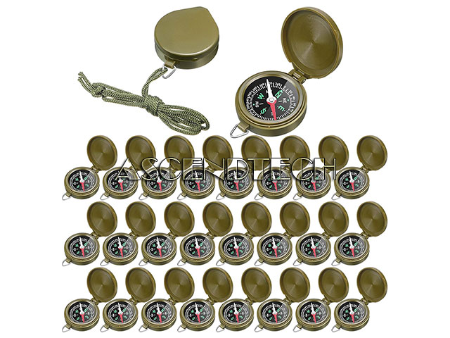 24 Pack Army Green Camping Hiking Hunting Mini Pocket Compass with Hanging Rope.