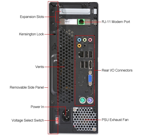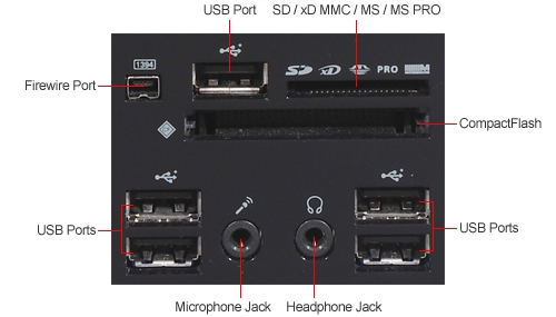 Ports and Connectors: (1) PS/2 Mouse Port; (1) PS/2 Keyboard Port; (1) VGA 15-pin Port; (9) USB Ports; (1) eSATA; (1) RJ-45 Network Port; (5) Audio Ports
