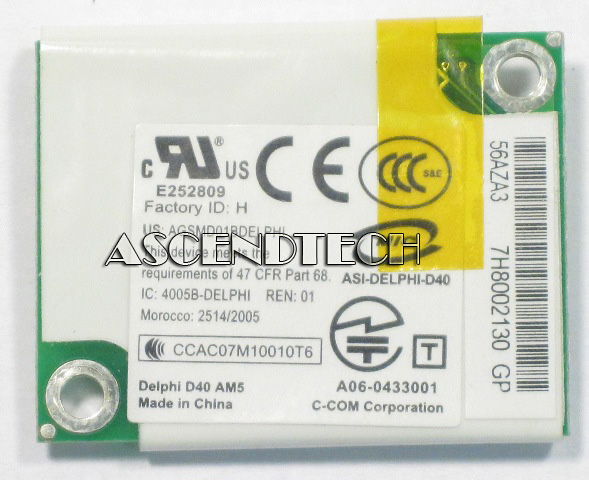 Agere Systems Inc D40 56K Internal Laptop Delphi Modem Module Card for Acer Gateway Dell HP Fujitsu Toshiba Series ASI-DELPHI-D40.