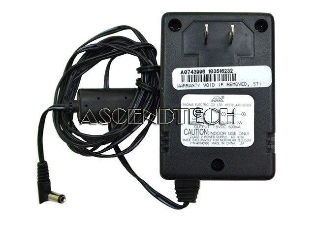 Anoma Electric AD-8730A for Northern Telecom 120V 50/60Hz 9W AC 7.5V 600mA DC Class 2 Power Supply A0743996.