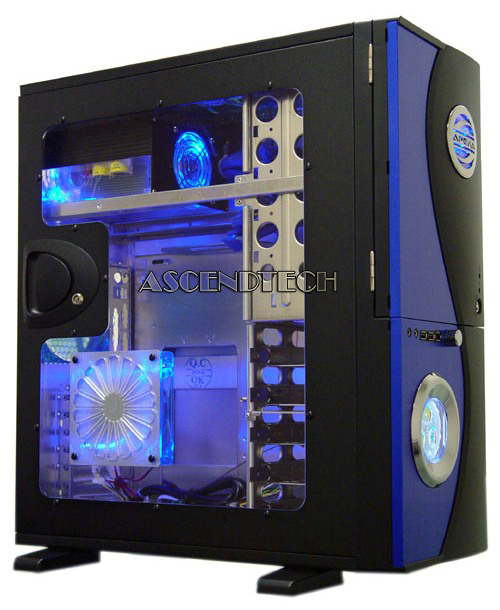 Apevia X-TELSTAR-BL Blue / Black ATX Full Tower Computer CaseNo Power Supply. The X-Telstar PC case is designed to complement today's modern decors. Sporting a simple yet elegant panel design and distinctive features include-a cool blue LCD screen for monitoring power supply voltages, sound volume, fan speed, and CPU/Hard Drive temperatures. It not only keeps you aware of your PC's environment status, but is an attention grabbing element of the case. The built-in fan speed controller allows you to easily regulate airflow and fan noise. The high quality, sturdy construction, and attention to detail throughout this full tower PC case will definitely put you ahead of the game!
