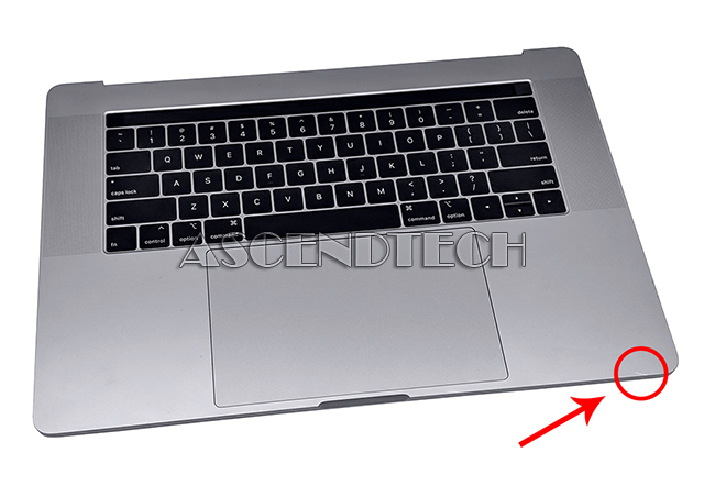 Apple MacBook Pro A1990 15.4" Series Space Gray Aluminum Top Case Keyboard Trackpad Palmrest Assembly w/ Speakers and Battery 661-10345. This is a replacement top case for the MacBook Pro 15" with Touch Bar released in mid 2018 in space gray. This includes the keyboard, battery, trackpad, and speakers.