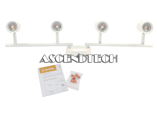 Arcfox TDGU10L-4 120V 60Hz 5-50W Aluminum 4-Lamp MR16 GU10 LED Flexible Rotatable Spotlight Lighting Fixture.