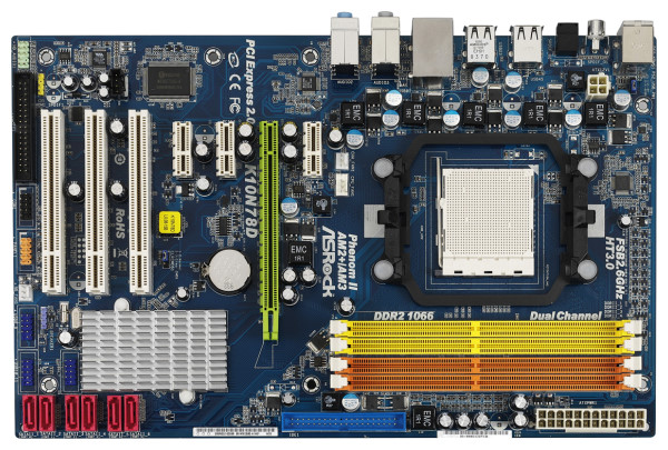 ASRock K10N78D AM2+/AM2 NVIDIA nForce 720D ATX AMD Motherboard. ASRock K10N78D is an affordable ATX motherboard that's ready to let you experience the power of the AM2+ processor. Get ready to rock with AMD's Phenom, Athlon 64 dual-core or Sempron CPUs with 1000 MHz Hyper Transport technology speeding transfers between the processor and the onboard components. Four 240-pin DDR2 memory slots let you install up to 16B of RAM with full dual channel support.