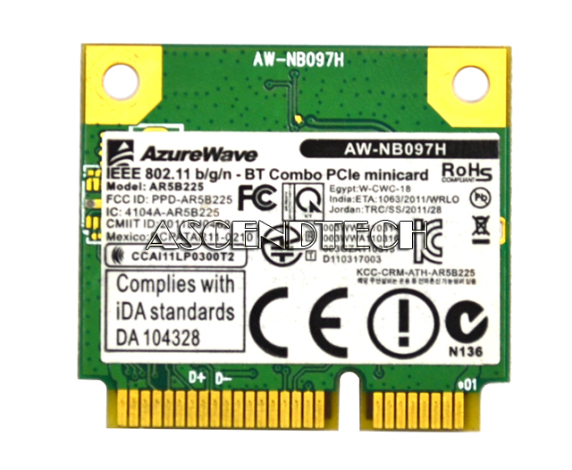 ASUS G75 N56 Series 802.11b/g/n Bluetooth Wi-Fi PCIe Mini Wireless Card AW-NB097H AR5B225.