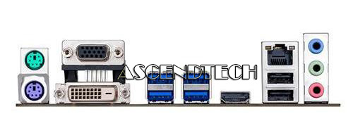 | Back I/O Ports | 1 x PS/2 keyboard (purple) 1 x PS/2 mouse (green) 1 x DVI-D 1 x D-Sub 1 x HDMI 1 x LAN (RJ45) port(s) 4 x USB 3.0 2 x USB 2.0 3 x Audio jack(s) |