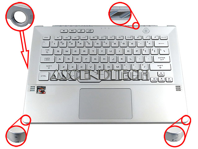 Asus ROG Zephyrus G14 GA401 Series Laptop Silver Top Cover US English Backlit Keyboard Palmrest Touchpad Assembly 6053B1887701.