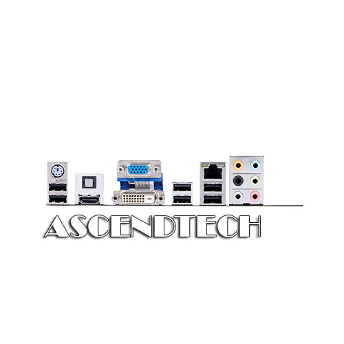 Ports: 12x USB 2.0 Ports (6 rear, 6 on mid-board); 1x PS/2 Ports; 1x VGA Port; 1x DVI Port; 1x HDMI Port; 1x RJ45 LAN Port; 1x Optical S/PDIF-out Port; Audio I/O Jacks
