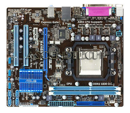 Asus M4N68T-M LE AM3 DDR3 Motherboard. This motherboard supports AMD® Socket AM3 multi-core processors with unique L3 cache and delivers better overclocking capabilities with less power consumption. It features dual-channel DDR3 1333 memory support and accelerates data transfer rate up to 2000MT/s via HyperTransport™ 1.0 based system bus. This motherboard also supports AMD® CPUs in the new 45nm manufacturing process.