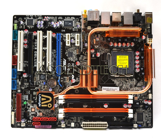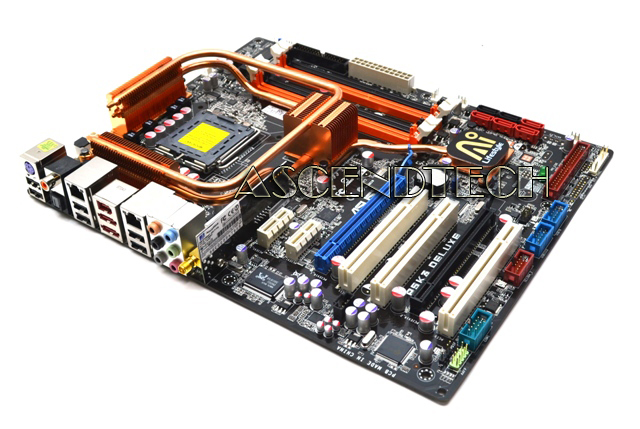 Asus P5K3 Deluxe LGA775 P35 DDR3 Motherboard. This motherboard supports the latest Intel 45nm CPU which introduces new micro-architecture features for greater performance at a given frequency, up to 50% larger L2 caches, and expanded power management capabilities for new levels of energy efficiency. The Deluxe version of the motherboard has built-in native DDR3 1333 support and is able to overclock with an ultra high frequency to achieve DDR3 1840. These ASUS motherboards still provide you with quiet thermal solutions - which contain the 8 phase power design, Stack Cool 2 and the Heat Pipe Design functions. They also come with the newest AI Gear 2 to save up to 50% of CPU power usage. Complementing all these features are Asus's innovative tools - AI Slot Detector; allowing the user to conveniently install the computer. The P5K3 series decreases temperature, provides stable overclocking, lowers noise levels and saves the most electricity.