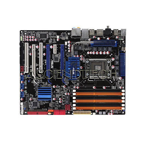 ASUS P6T LGA 1366, Intel X58, SATA, SLI Ready, CrossFireX Ready, Triple Channel DDR3 support, RAID, Hyperthreading support Motherboard introduces a new era for extreme performance. It is an X58-based motherboard that supports Intel’s new generation extreme performance Core i7 Processors and both SLI and CrossFireX! Six SATA ports with RAID 0, 1, 5, and 10. Memory support includes up to 12GB of Triple Channel DDR3 memory. Intel has brought back Hyperthreading technology and combined it with a native quad-core design to give support for 8 separate threads in the new LGA1366 / Socket B CPU interface and their replacement for the old Front Side Bus technology, QuickPath Interconnect provides a system bus speed of up to 6.4GT/s. The three PCI-Express 2.0 slots operate at x16/x16/x4 to take full advantage of either 2 or 3 graphics cards, allowing up to four GPUs to be used for maximum graphics performance.
