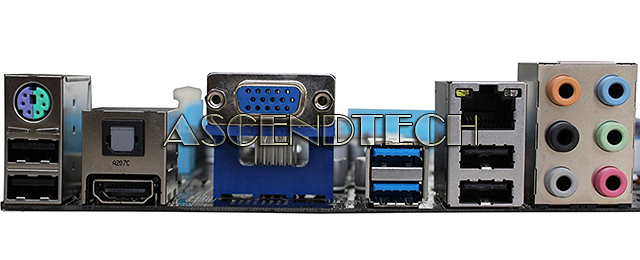 Input/Output Ports: 6x Audio Ports, 1x Optical Audio port, 4x USB 2.0 Ports, 2x USB 3.0 Ports, 1x HDMI Port, 1x VGA Port, 1x RJ-45 (Ethernet) Port, 1x PS/2 Port