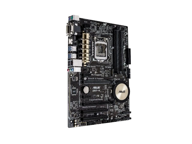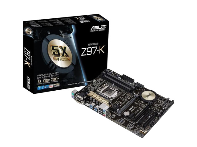 Asus Z97-K/CSM Intel Z97 Socket LGA1150 DDR3 3200 Serial ATA 6Gb/s Genuine ATX Motherboard. High-value Z97 ATX packed with M.2, high-clarity Crystal Sound 2 and enduring 5X Protection for enhanced performance and potent entertainment.