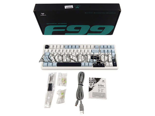 AULA F99 Blue & White 8000mAh Battery 2.4GHz Bluetooth USB-C Pre-lubed Linear Switches Hot Swappable RGB Backlit US English Wireless Mechanical Keyboard.