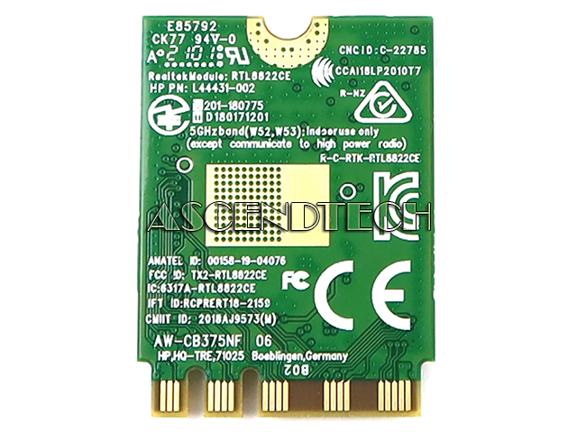 Features: FCC ID: TX2-RTL8822CE; IC: 6317A-RTL8822CE