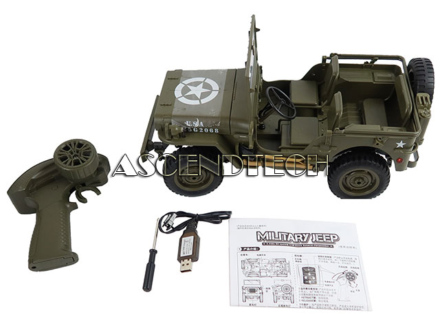 - Realistic Design: Meticulously crafted 1:10 RC Crawler scale model with authentic military styling and details, steering wheel linkage, body steering wheel, synchronous steering with wheels, and incomparable realness. The 2.4GHz transmitter allows precise control from a distance.