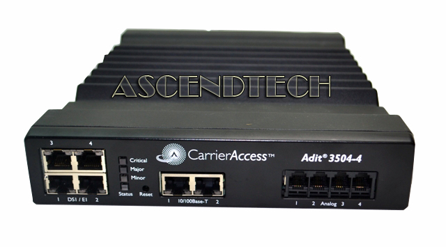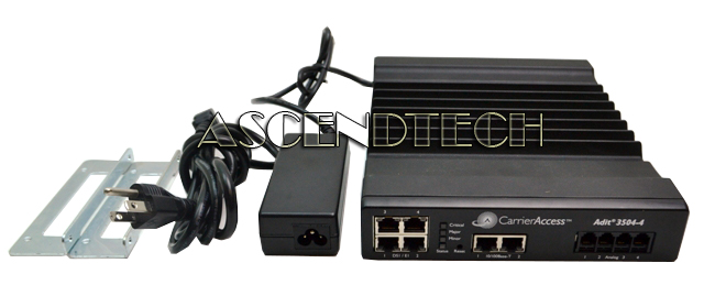 Genuine Original Carrier Access 3500 Series 3504-4 CSU/DSU IP Business Gateway High Performance Router with Power Supply 3G-301DN13 ADIT3504-4 035-0347-0002. The Adit 3500 integrates the features of a trunk gateway, highperformance IPSec VPN-capable router, and stateful firewall with flexible WAN options. It replaces multiple elements at the customer premises that typically provide routing, security, and trunk gateway functions – offering a powerful blend of speed, security, data and voice. Additionally a 4 FXS option provides connectivity for analog fax and modems. This single platform offers scalability and high-performance for Internet and IP access, LANto-LAN connectivity over private and public networks, and VoIP PBX trunk service applications.