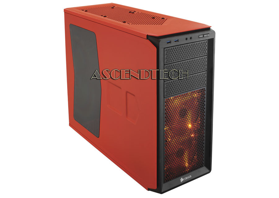 Corsair Graphite Series 230T CC-9011038-WW with orange LED fans ATX Mid Tower Computer Case. Designed for a fast and straightforward system build, the Corsair Graphite 230T Computer Case is a great choice for building a gaming PC or the replacement of a boring office-grade box. It's constructed with a tool-less design from inside out, and the only time you’ll need a screwdriver is for attaching the motherboard. The simple exterior, with clean lines and superior craftsmanship, presents a sober, refined look, while cable management makes for a neat, clutter-free inner system. Add to that dual front intake LED fans for great cooling potential. The Corsair Graphite 230T is also future-proof, with up-front USB 3.0 connectivity, dedicated SSD bays, and seven expansion slots, making it capable of addressing your growing needs of tomorrow. Choose the Graphite Series 230T, and the only time you’ll need a screwdriver is for attaching the motherboard. Your own custom-built PC will have a look that’s aggressive, yet refined, with up-front USB 3.0 and headset connectors for quick access. Add to that dual front intake LED fans for great cooling potential. Whether you’re building a gaming PC or just a replacement for a boring office-grade box, you can enjoy the unique pride of ownership that comes from a great-looking system that you’ve built yourself.