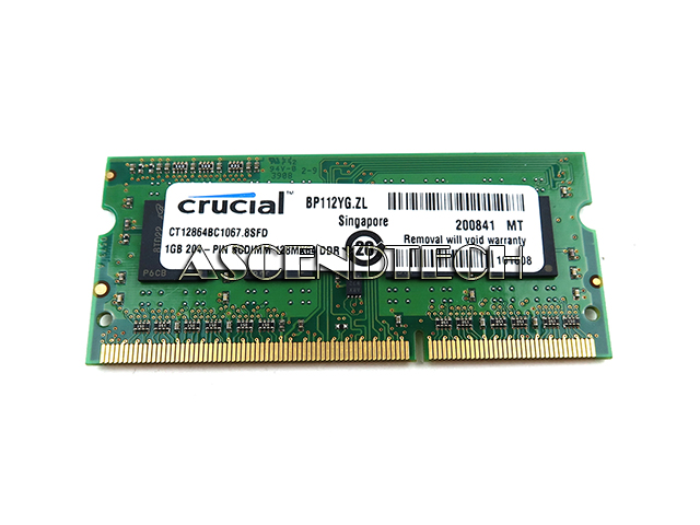 Crucial 1GB 1Rx8 DDR3 SO-DIMM PC3-8500 1066MHz 204-Pin Non-ECC Unbuffered CL7 1.5V Laptop Memory Module CT12864BC1067.8SFD.