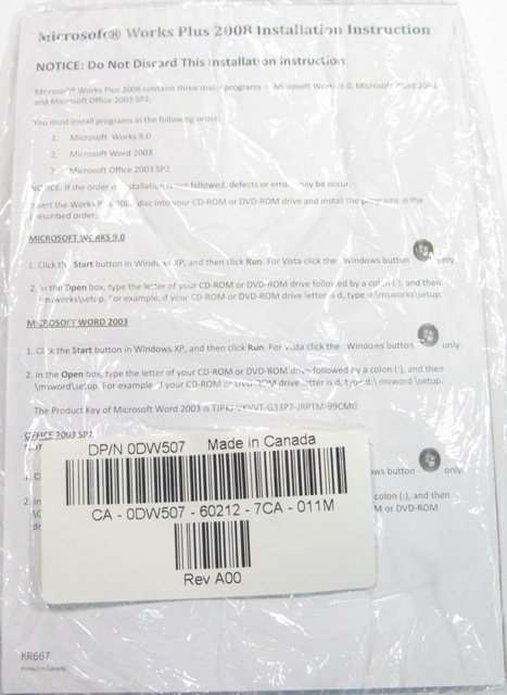 Dell 0DW507 Microsoft Works Plus 2008