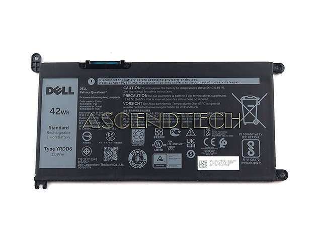 Dell Inspiron 14 5481 5482 5483 Series 11.4V 42Wh 3500mAh 3-Cell YRDD6 Standard Rechargeable Li-Ion Laptop Battery VM732 0VM732 CN-0VM732.