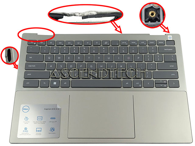 Dell Inspiron 14 7425 2-in-1 Series Pebble Green Laptop Top Cover Fingerprint Reader US English Backlit Keyboard Palmrest Touchpad Assembly VG9M1 0VG9M1 CN-0VG9M1.