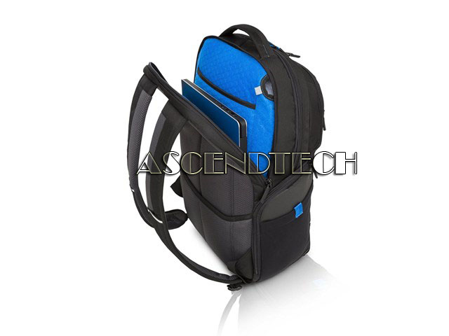 Dell Inspiron Latitude Series 15" Professional Black Laptop Backpack Carrying Bag 52CDX 052CDX CN-052CDX. The Dell Professional Backpack 15 securely stores your 15” laptop and tablet within a dedicated plush lined laptop compartment and tablet pocket while you’re out and about. Multiple storage compartments organize and protect your everyday office essentials. Water resistant and durable materials protect your laptop and accessories from the weather while reflective accents on the bag provide increased visibility during low light commute hours. Carry the backpack in three comfortable ways using the padded handle grab, adjustable padded shoulder straps, or the trolley pass-through for attaching to rolling luggage. You can also charge your laptop within the bag on-the-go with a portable battery charger (sold separately) tucked neatly in the dedicated battery pocket via a cable pass-through.