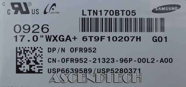 Dell 0FR952 is a color active matrix TFT (Thin Film Transistor) liquid crystal display LCD is a color active matrix TFT (Thin Film Transistor) liquid crystal display (LCD) that uses amorphous silicon TFT as switching devices. This model is composed of a TFT LCD panel, a driver circuit and a backlight system. The resolution of a 17.1" contains 1440 x 900 pixels and can display up to 262,144 colors. 6 O'clock direction is the Optimum viewing angle.