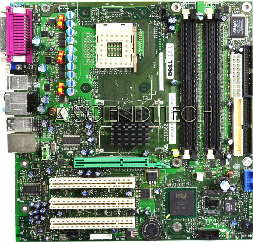Dell Dimension 4600 F4491 N2828 Motherboard mPGA478. The Intel® Desktop Board harnesses the advanced computing power of the latest Intel Pentium 4 processor supporting Hyper-Threading Technology. Designed for the Intel® 865 chipset, the Desktop Board brings exciting new levels of performance and features to the desktop by combining support for an 800MHz system bus with dual channel DDR400 and native Serial ATA 150 featuring Intel Technology. Because the Desktop Board includes the latest technologies and high-quality integrated components, system builders can realize significant cost savings without sacrificing performance. The features of this board support an optimal user experience in a broad range of usage models for today’s computer enthusiasts.