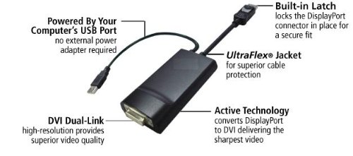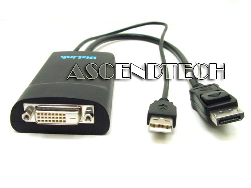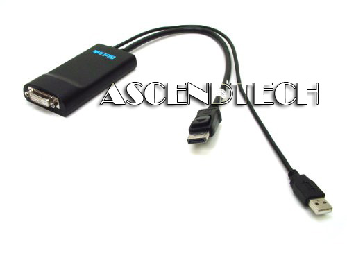 Dell BizLink DisplayPort to DVI-D Dual Link Adapter Cable XT625 0XT625 CN-0XT625. The DisplayPort to DVI-D Dual-Link cable adapter enables the connection of your DisplayPort supported computer to a DVI supported monitor or other display. It works with either dual-link or single-link digital DVI connections supporting up to dual-link resolutions. Simply connect the DisplayPort end of the connector to your computer and plug your existing DVI cable from the display into the DVI adapter. The built-in USB cable connects to your PC's USB port providing power to the cable adapter. Set-up is complete. The circuitry built-into the cable adapter seamlessly converts the DisplayPort's video signal into a DVI high-resolution digital video signal. Easily Connects a DisplayPort Supported PC to a DVI-D Enabled HDTV, Monitor or Projector. The DisplayPort to DVI-D Dual-Link cable adapter works with both DPCP (DisplayPort Content Protection) and HDCP (High-Definition Content Protection) ensuring successful transmission of all video content. The cable adapter supports PC resolutions of up to 2560x1600 and color depths of up to 32-bit and all HDTV resolutions including 1080p. Compliant with DisplayPort 1.1 specification for 1.62 and 2.7Gbps. Compliant with Digital Visual Interface (DVI) version 1.0 specification. Supports single link DVI and dual link DVI with an additional built in active protocol converter. Transfers Uncompressed High-Definition Digital Video Signals. Supports Computer Resolutions up to 2560x1600 and 1080p HDTV's. Supports up to 32-Bit Color for Billions of Colors. Supports all DVI-D Dual-Link and DVI-D Single-Link Monitors.