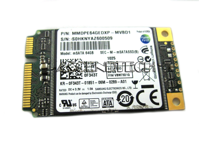 DELL F343T 64GB Samsung Solid State Drive. The module is simple and easy to install for immediate capacity and performance benefits.