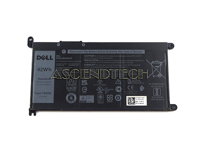 Dell Inspiron 14 15 17 Latitude Vostro Series 11.4V 42Wh 3500mAh 3-Cell Rechargeable YRDD6 3ICP5/57/79 Li-ion Laptop Battery WJPC4 0WJPC4 CN-0WJPC4.