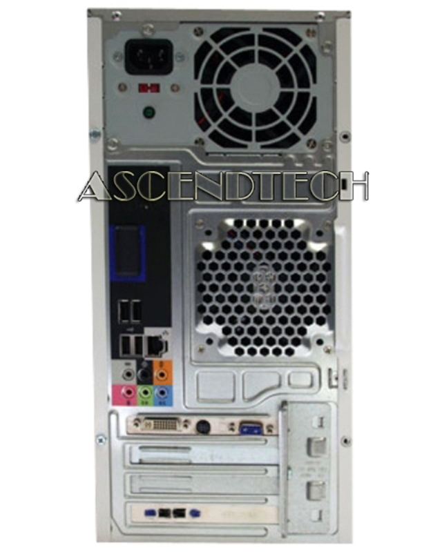 | Rear I/O Ports: | Four (4) USB 2.0 ports One (1) DVI (on expansion card) One (1) Optical Audio "Toslink" One (1) AT Keyboard port One (1) 6-pin FireWire 1394 One (1) RJ-45 Ethernet jack Six (6) 3.5 mm Audio jacks One (1) AC power port One (1) 15-pin VGA port |