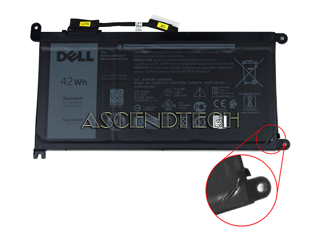 Dell Inspiron 13 15 Latitude 13 Vostro 14 15 Series 11.4V 42Wh 3500mAh 3-Cell WDX0R Standard Rechargeable Li-Ion Laptop Battery CYMGM 0CYMGM KR-0CYMGM.