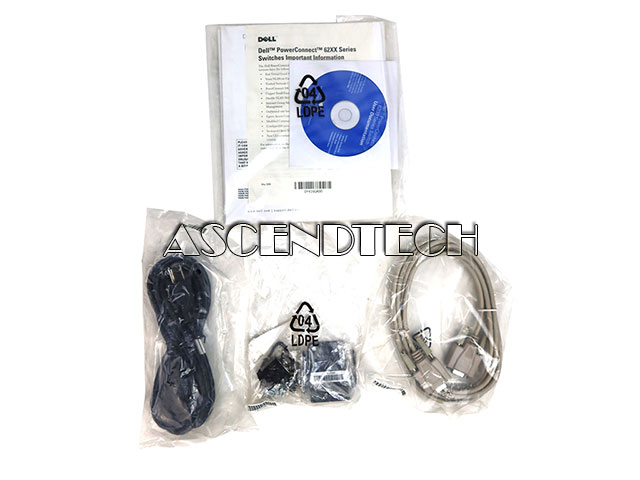 Features: Dell AC Power Cord NEMA 5-15P IEC-320 C13 Black 6ft Cable 10A 125V P/N: 3090116400, 10ft Db9 F-f RS-232 Serial Cable P/N: 3080201500, CD-Disk, Manuals, Set of 1 pair brackets (L+R) with installation hardware
