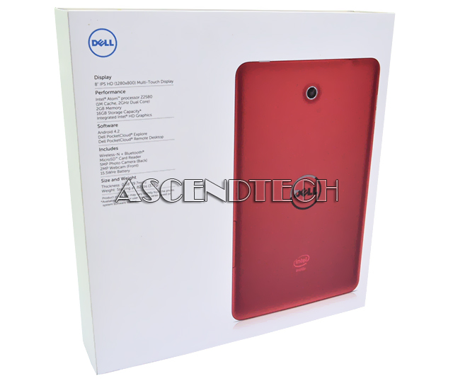 Dell Venue 8 3830 T02D001 Red 8" IPS LCD HD 1280 x 800 2GB RAM 16GB Storage 2GHz Intel Atom Z2580 Processor WiFi Android 4.2.2 Tablet 3K90X 03K90X CN-03K90X. Introducing the new 8" lightweight Android tablet that’s powerful, stylish and designed to entertain with a HD touch screen, award-winning audio and optional Dell Cast.