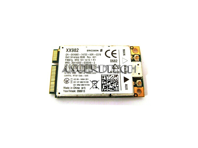 Dell XX982 5530 WWAN Ericsson F3507G Wireless Modem. Stay connected while on the go with the Wireless 5530 3G/HSDPA Mobile Broadband Card from Dell. It uses WCDMA Technology that offers fast, wireless broadband speeds to help you achieve LAN-like mobility. It helps maximize your productivity while maintaining contact with clients, colleagues and family. Its high efficiency compact broadband design provides consistent throughput performance. Its GPS capability allows you to retrieve location data from GPS satellites, utilize GPS navigation and location-based applications.
