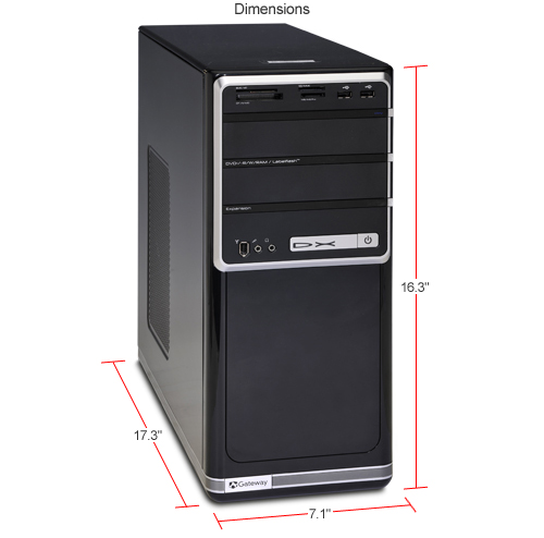 Gateway DX4710-09 2.5GHz Processor 6GB Memory 640GB Hard Drive DVDRW Vista Home Premium 64-bit Desktop Computer. This Gateway DX4710-09 Desktop Computer delivers raw power and maximum performance. The 6GB of memory and Vista Home Premium 64-bit will help you surf the Web and download anything at lightning speed. The Gateway DX471009 Desktop Computer has powerful components, as well as Firewire and USB ports. But there's more. It has what most video editing applications need - the power of a dual core CPU and 6GB of memory. If you need to tackle demanding applications, power through gaming and start building a library of multimedia goodies, you need this PC. You will have the power of an Intel Pentium Dual Core processor and plenty of storage space with a 640GB hard drive.