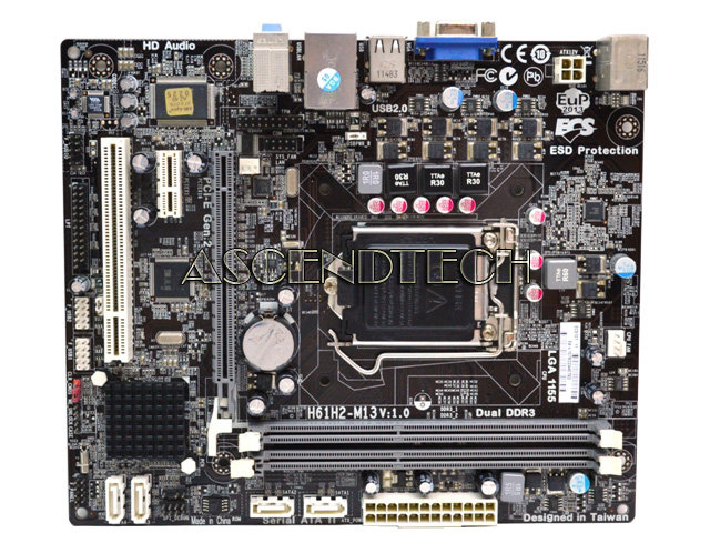 ECS H61H2-M13 V1.0 LGA1155 Intel H61 Micro ATX Motherboard. When it comes to the quality and durability of your motherboard, ECS goes above and beyond industry standards to ensure that you have a motherboard that will last long and always continue to out perform the competition. Trust only motherboards built with Durathon Technology.