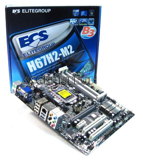ECS H67H2-M2 LGA1155 Intel H67 Chipset DDR3 SATA 6GB/s USB 3.0 Motherboard. High performance ECS Motherboard H67H2-M2 supporting latest socket LGA 1155 Intel® 2nd Generation Core™ i7 / i5 / i3 Processors. It Features Intel H67 Express chipset with SATA 6Gb/s anddigital output delivers smooth blu-ray and HD video playback for the best visual experience.