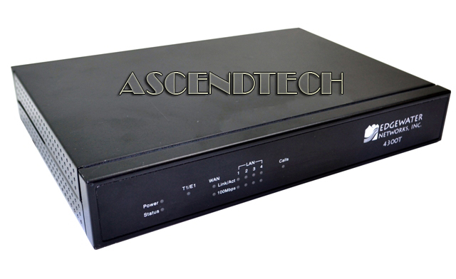 Genuine Edgewater Networks 4300T 4-Port 10/100 T1/E1 WAN Converged Network Appliance Router 120-4300T-01-B. The 4300T resolves NAT/FW traversal problems for SIP, MGCP and H.323 traffic. It allows a single public IP address to be used for multiple VoIP clients. VoIP survivability is also provided by the 4300T so that local SIP PSTN gateways can be used for inbound/outbound calling during WAN link failures. The 4300T provides an integrated T1 CSU/DSU for small and medium office connectivity. A state full packet inspection firewall is used in combination with a VoIP application layer gateway to provide comprehensive “media-aware” security. The 4300T also supports IPSec for secure site-to-site networking. The 4300T resolves NAT/FW traversal problems for SIP, MGCP and H.323 traffic. It allows a single public IP address to be used for multiple VoIP clients. VoIP survivability is also provided by the 4300T so that local SIP PSTN gateways can be used for inbound/outbound calling during WAN link failures. The 4300T is a powerful, flexible platform that can be deployed initially as a low-cost WAN access router and then licensed through software for more advanced VoIP features and increased call performance. It is the ideal platform for service providers offering DIA, hosted VoIP and managed security services or enterprises migrating to converged voice and data networks.