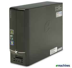 eMachines EL1331G-01W AMD Athlon 2850e 1.8GHz processor, 2GB DDR2, 320GB Hard Drive, DVD±RW, Windows 7 Home Premium 64-bit Desktop PC. The eMachines EL1331G Desktop is as space-saving and affordable as ever with reliable AMD Athlon processing, rich graphics performance and plenty of storage space for your media and files. With the new Genuine Windows 7 Home Premium 64-bit operating system and front access ports, it is simple to have fun with your digital media, keep in touch with friends and tackle tasks with ease.
