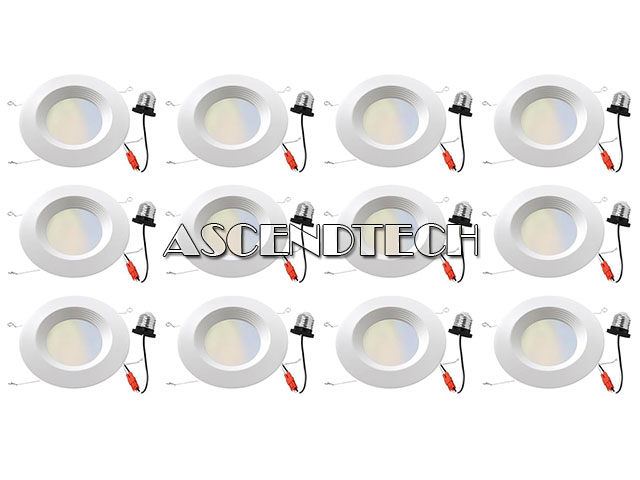 Energetic Lighting 12Pack 5/6in E26 Base 12W 2700-6500K 5CCT Dimmable LED Recessed Lights 6IN-1000LM-5CCT.