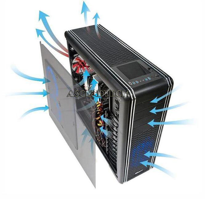 Air Cooling - Left Side pre-installed: 1x blue 18cm Vegas fan optional: 1x 18cm fan