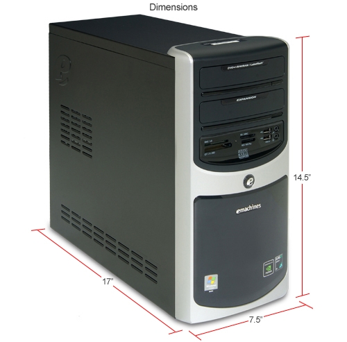 Emachines ET1161-05 Athlon LE-1620 2.4GHz Processor 2GB Memory 160GB Hard Drive DVD±RW Windows Vista Home Basic Desktop Computer. Emachines ET1161-05 Desktop PC packs an AMD Athlon 64 LE-1620 2.4GHz processor with 2 cores. Add to that 2GB of DDR2 memory and a 160GB hard drive and you can have a small library of music and data. It also has a DVD/CD burner you can use to burn your home videos, music, back up important data and play your favorite video games. Enjoy great visuals with the NVIDIA GeForce 6150SE graphics. All these components run smoothly with Microsoft Windows Vista Home Basic.