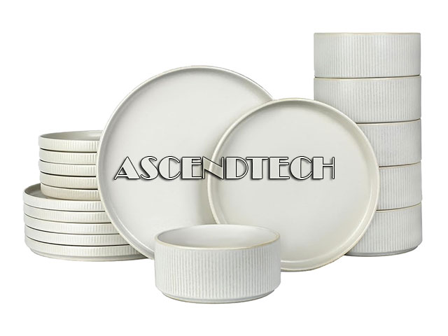 - Stackable: We are truly captivated by the design featuring vertical ribbed edges, but we also recognize the importance of optimal stacking. To address this, we have incorporated precision grooves at the base of this dish set, ensuring smooth and secure stacking