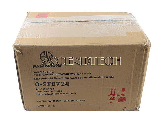 Famiware 0-ST0724 Matte White 18pcs 6 Dinner Plate 6 Salad Plate 6 Cereal Bowls Dinnerware Set 101080724.