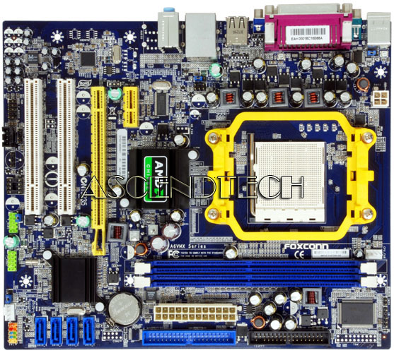 Foxconn A6VMX AMD Socket AM2+ / AM2 Motherboard. Get affordable performance with Foxconn's A6VMX motherboard. Ideal for home or business environments, this micro-ATX board is based on AMD's 690V and SB600 chipsets to support single and dual-core CPU's including Athlon 64 X2, Athlon 64 FX, Athlon 64 and Sempron processors and is certified for Windows 7. Achieve up to 1000 MHz speeds with up to 4GB of DDR2 memory with full dual channel support and 1000 MHz hyper transport technology to achieve increased system performance at lower power. The onboard ATI Radeon Xpress 1200 video chipset can be supplemented with a graphics card in the PCI Express x16 slot. Additional PCIe and PCI slots offer extra flexibility. Connect up to four SATA devices for high-speed data transfer rates along with the option of RAID configuration. Get theater-quality sound from the Realtek ALC662 onboard chipset which delivers 5.1 channel HD audio. Connect to your home or business network with the Ethernet LAN and add peripheral components to your system through the four USB 2.0 ports.